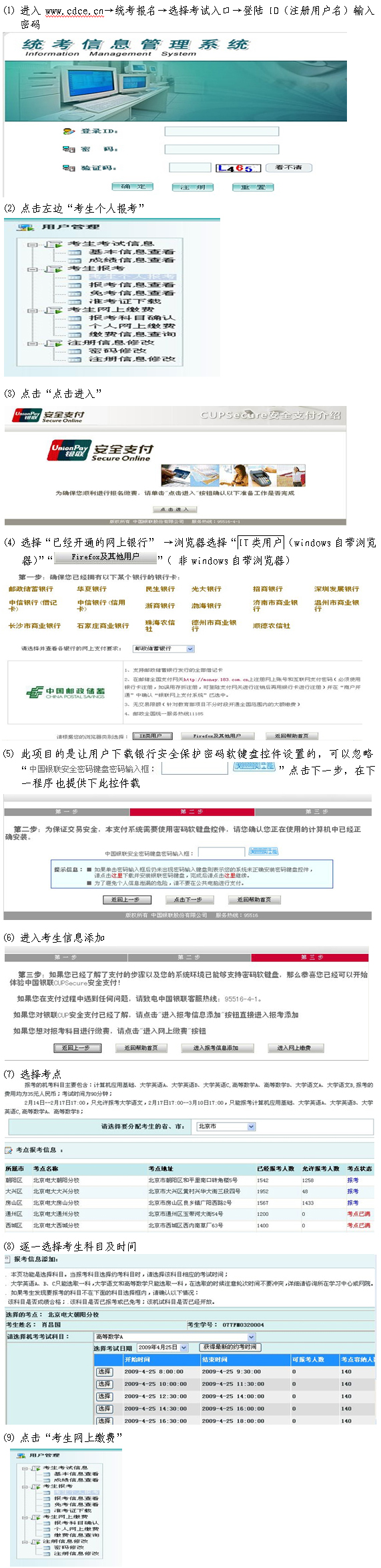 ⑴登陆中国远程与继续教育网(www.cdce.cn ),在统考报名栏目里使用“网院考生入口或电大考生入口”点击进入注册。