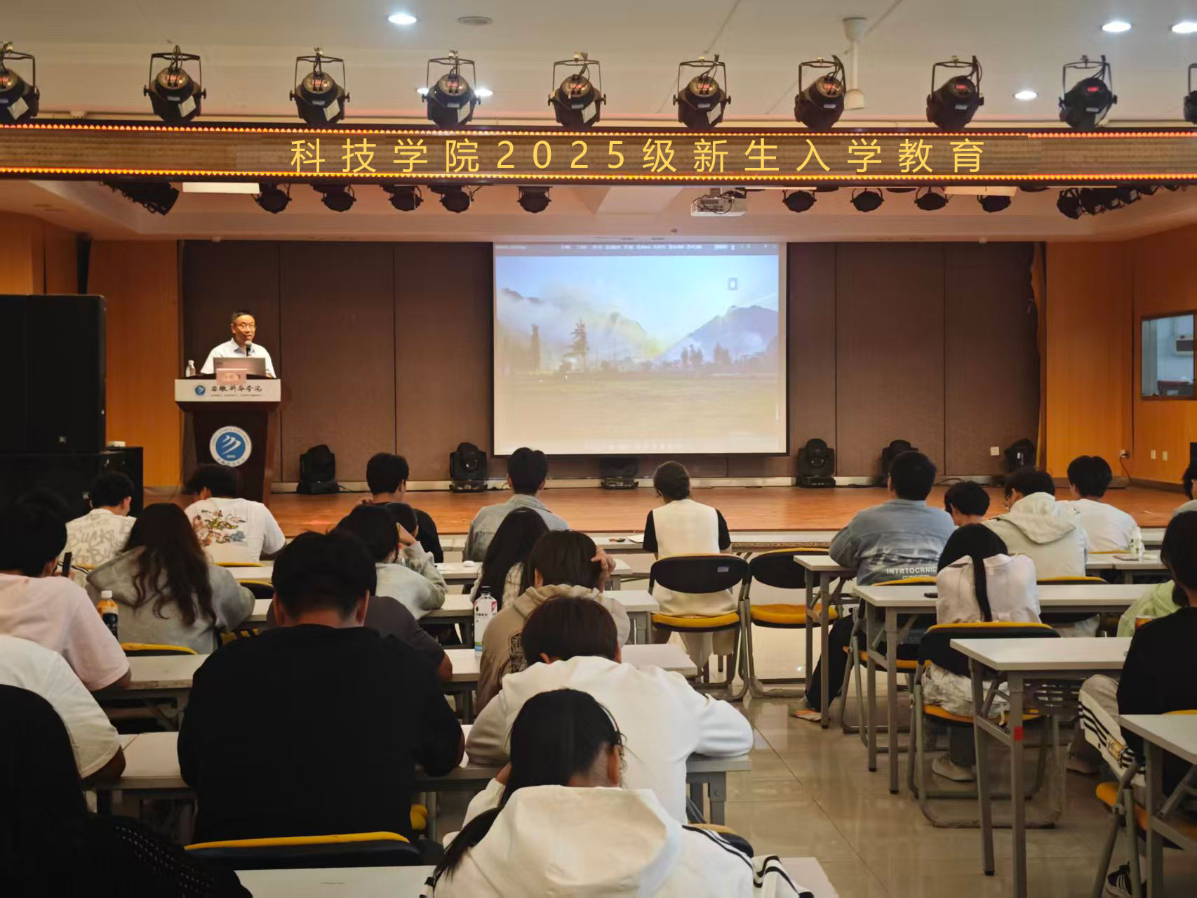 本网讯(通讯员:叶娟)9月18日下午,科技学院2025级新生入学教育之“光影第一课,发现校园之美”摄影培训活动在小礼堂如期举行。本次活动特邀合肥市梦园小学教育集团校长、摄影教育专家邵春荣担任主讲,科技学院副院长朱向群、全体新生辅导员及2025级新生共同参加。